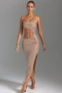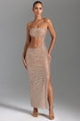 Embellished Cut-Out Bandeau Maxi Dress in Honey