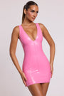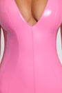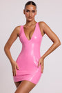Vinyl Plunge Neck Bodycon Mini Dress in Pink