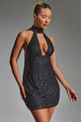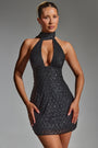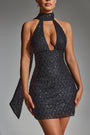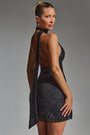 Embellished Scarf-Detail Halterneck Mini Dress in Black