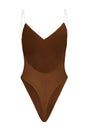 Soft Mesh V-Neck Bodysuit in Chestnut