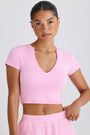 • Stretch Cotton Jersey Graphic Print Cropped T-Shirt in Bubblegum Pink