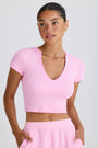 Stretch Cotton Jersey Graphic Print Cropped T-Shirt in Bubblegum Pink