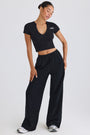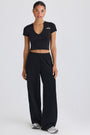 • Textured Cotton Jersey Straight-Leg Joggers in Black