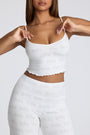 • Mid Rise Straight Leg Pointelle Trousers in White