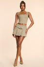 • Brushed Twill Mid Rise Pleated Micro Mini Skirt in Taupe