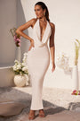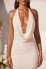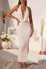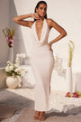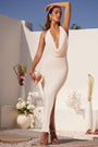 Plunge Cowl Neck Floor Length Dress in Ivory