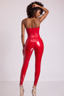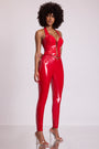 Vinyl Halter Neck Lace Up Corset Crop Top in Fire Red