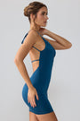 Slinky Jersey Open Back Mini Dress in Midnight Blue