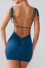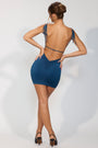 • Slinky Jersey Open Back Mini Dress in Midnight Blue