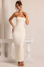 Embellished Bandeau Cowl Neck Maxi Dress in White