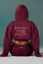 • Cotton Fleece Drawstring Cropped Hoodie in Plum