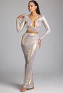 Mid Rise Metallic Jersey Gown Skirt in Light Gold
