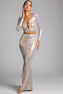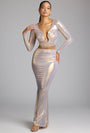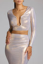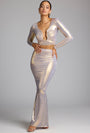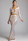 • Mid Rise Metallic Jersey Gown Skirt in Light Gold