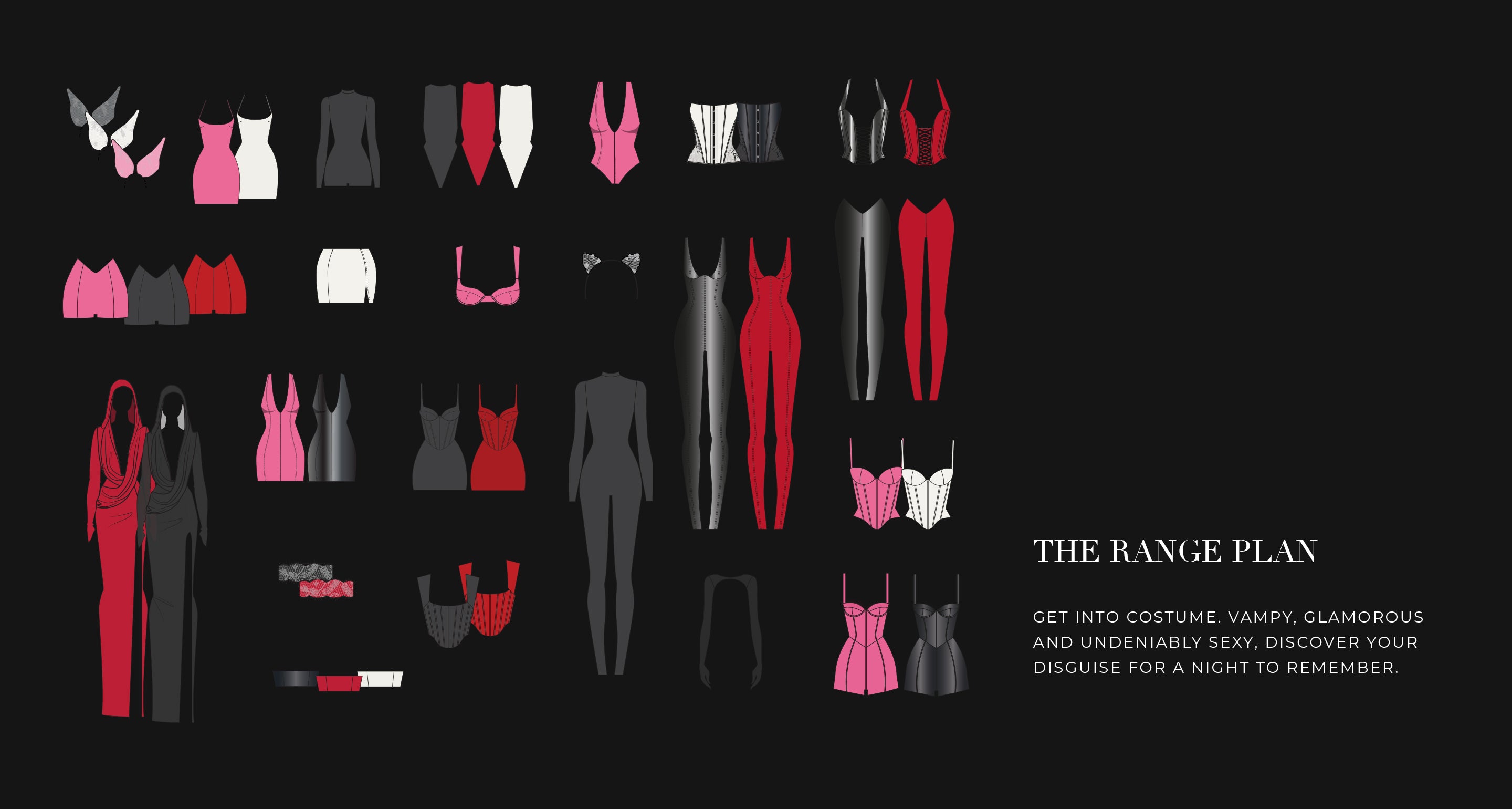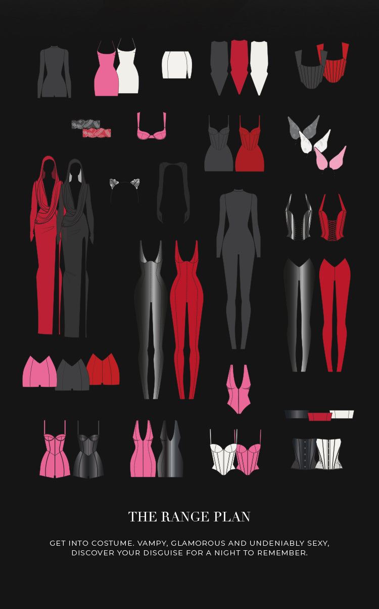 Vampy, glamorous and undeniably sexy, discover your disguise for a night to remember. Step into character in sultry satins, slinky jerseys and vinyl fabrications, that require minimal effort for maximum impact. Look to figure-defining corsetry, mini dresses and versatile separates, ready to be accessorised accordingly.