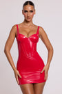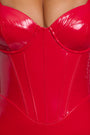 • Vinyl Corset Underwired Mini Dress in Fire Red
