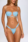 • Ruched Thong Bikini Bottoms in Pastel Muti Print