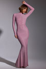 • Embellished Long Sleeve Evening Gown in Light Pink