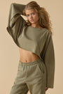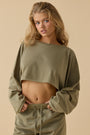 Oversized Long Sleeve Crop Top in Soft Olive