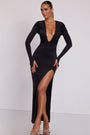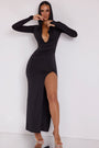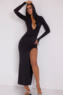 • Hooded Long Sleeve Maxi Dress in Black