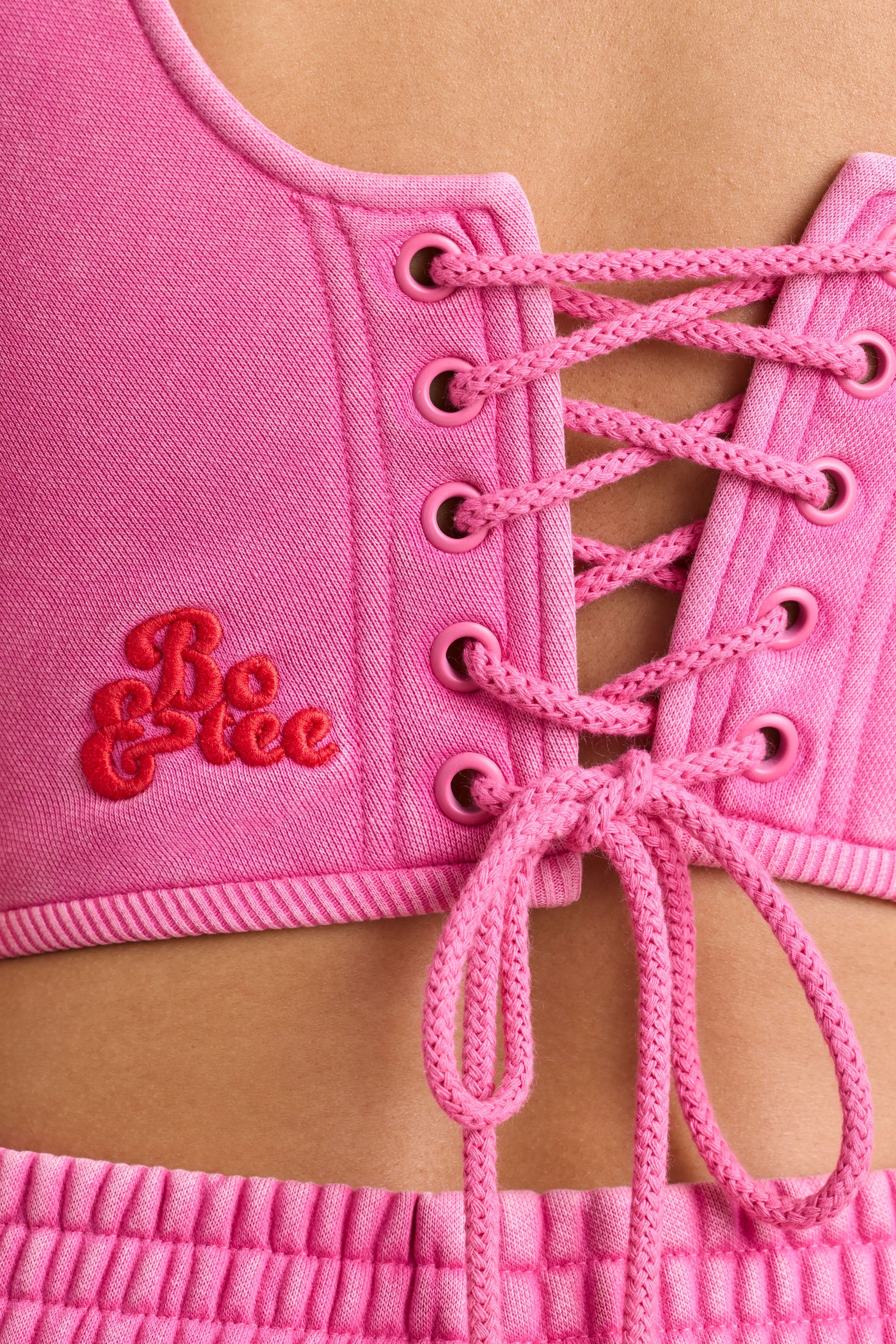 Brushed Jersey Corset Crop Top in Hot Pink