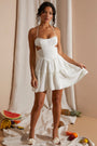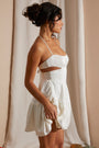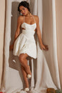 • Oh Polly's Cenit wearing the Fleur Mini Dress in White Satin fabric perfect for stylish cocktail hours