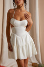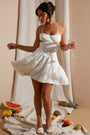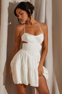 • Oh Polly's Cenit wearing the Fleur Mini Dress in White Satin fabric perfect for romantic date nights