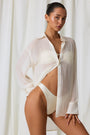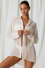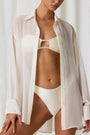 Great quality, comes up oversized. Sheer and beautiful pearl detail.