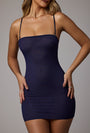 • Soft Mesh Mini Slip Dress in Navy