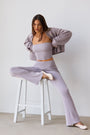 Chunky Knit Foldover Kick Flare Trousers in Dusty Lavender