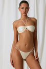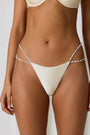 • Pearl-Detail Double-Strap Thong Bikini Bottoms in Pearl White