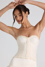 • Ruched Lace-Up Strapless Corset Top in Ivory