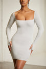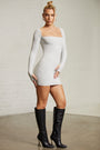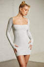• Long Sleeve Square Neck Mini Dress in Alloy