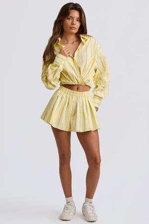 Cotton Poplin Stripe Pleated Shorts in Yellow Stripe