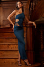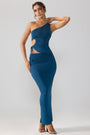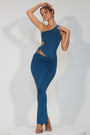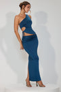 • Slinky Jersey Asymmetric Waist Maxi Skirt in Midnight Blue