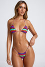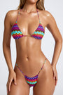 Ruched Thong Bikini Bottoms in Zigzag Print