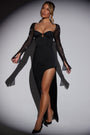 • Embellished Side Split Maxi Dress in Black