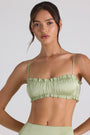 • Ruffle-Trim Smocked Crop Top in Spring Green