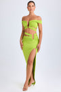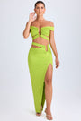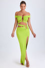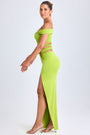• Asymmetric Cut-Out Maxi Skirt in Lime Green