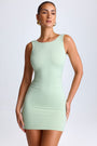 Draped Open-Back Mini Dress in Green