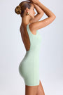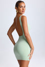 • Draped Open-Back Mini Dress in Green