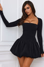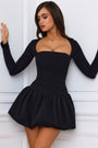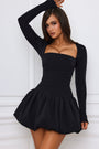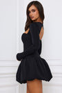 • Long-Sleeve Bubble Hem Mini Dress in Black