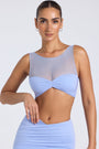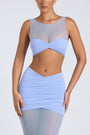 • Sheer Panelled Ruched Crop Top in Periwinkle Blue