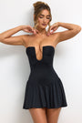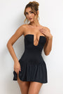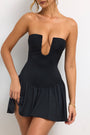 • Slinky Jersey Strapless Plunge Neck Mini Dress in Black